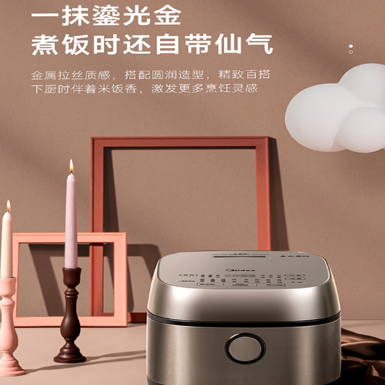 美的3L電飯煲金屬拉絲質感,外觀精致造型時尚。