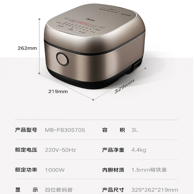美的(Midea)電飯煲電飯鍋 3L立體IH大火加熱復合精鐵釜內膽 MB-FB30S705