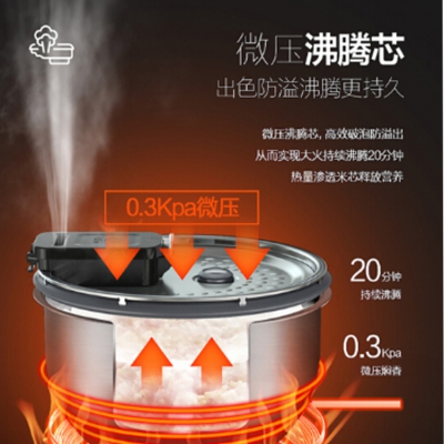 美的智能觸摸電飯煲微壓沸騰芯,鎖水防溢出。