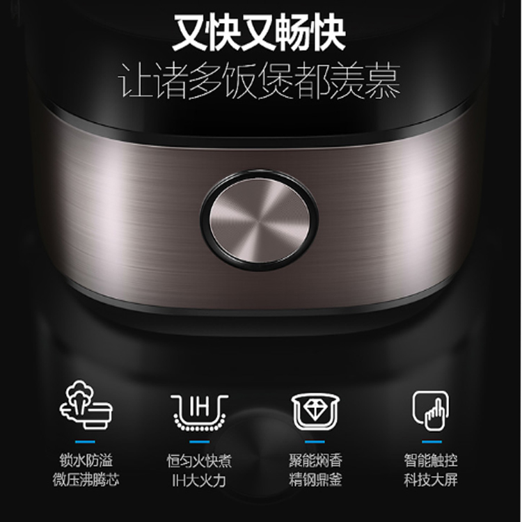 美的智能觸摸電飯煲IH大火力,恒勻火快煮,米飯不結塊。