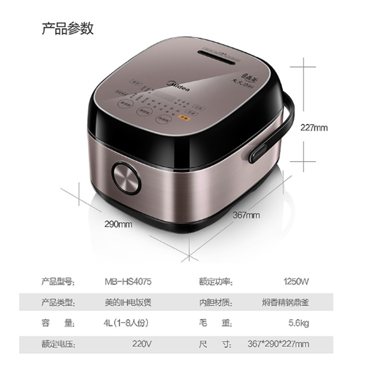 美的智能觸摸電飯煲采用智能觸控,科技大屏。