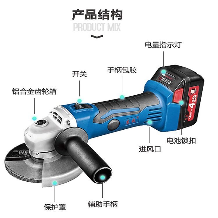 東成充電式角向磨光機細節解析圖