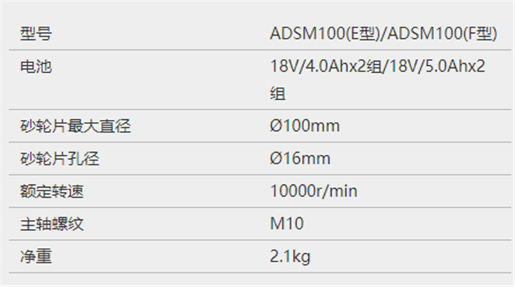 東成充電式角向磨光機基本參數圖