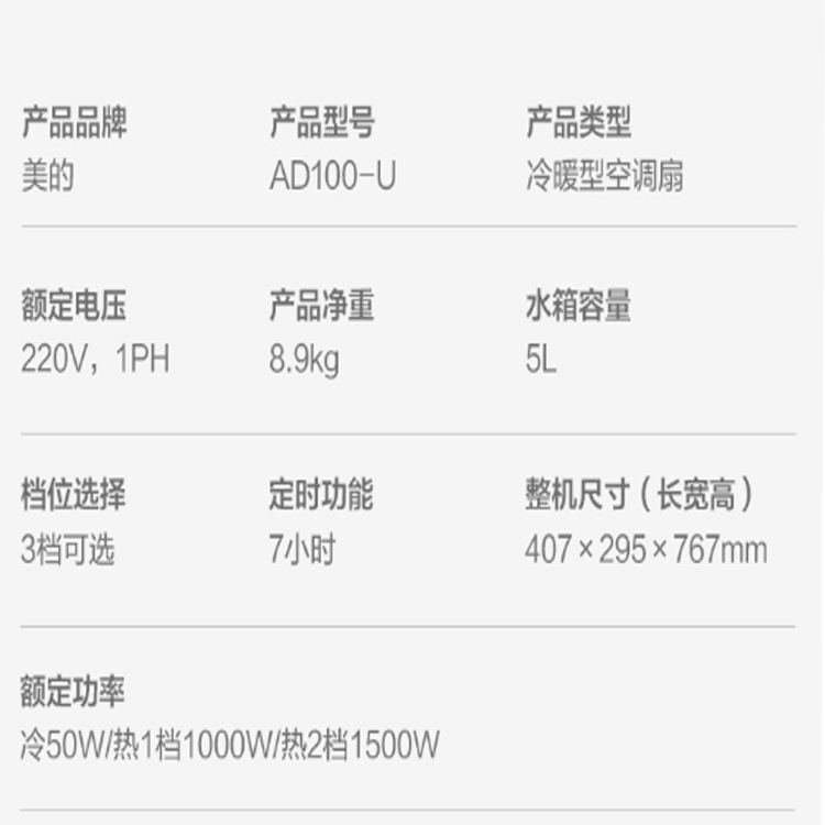 美的智能遙控空調(diào)扇PTC發(fā)熱體加熱技術(shù),安全速熱。