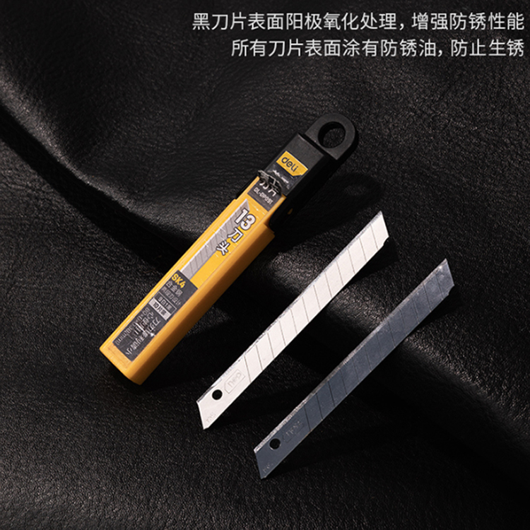 得力(deli) 13刀頭SK4合金鋼美工刀片黑刀片表面陽極氧化處理,防止生銹。