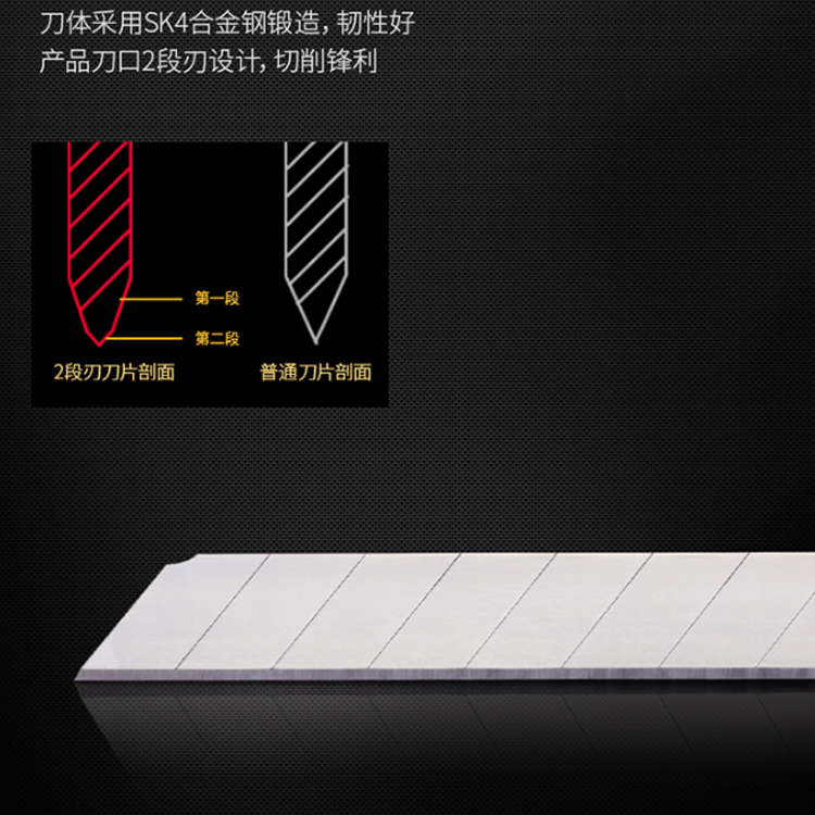得力(deli) 13刀頭SK4合金鋼美工刀片合金鋼刀體,刀口2段刃設(shè)計。
