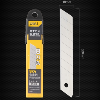 得力(deli) 8刀頭SK4合金鋼美工刀片 /裁紙刀片 10片(9白1黑)18mm DL-DP182