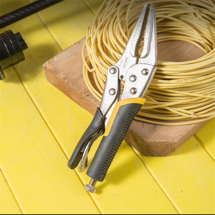 得力尖嘴大力鉗主要用于夾持零件進(jìn)行鉚接,焊接,磨削等加工,也可當(dāng)扳手使用