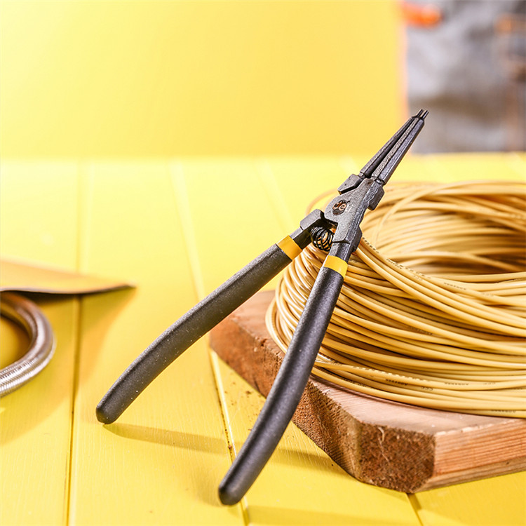 得力外直卡簧鉗鉗頭采用50#鉻釩鋼材質(zhì),精工鍛造,安全耐用