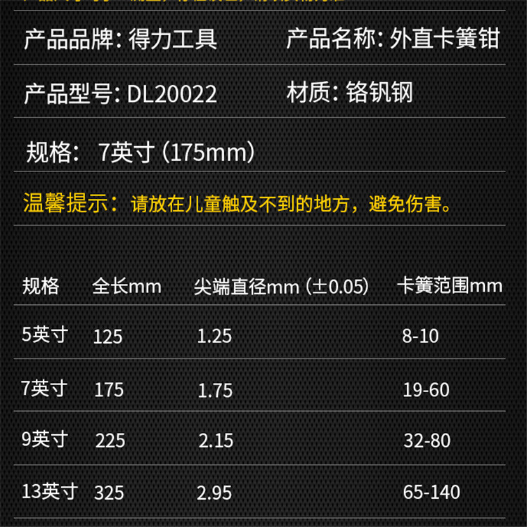 得力外直卡簧鉗擴(kuò)張鉗卡環(huán)鉗子參數(shù)