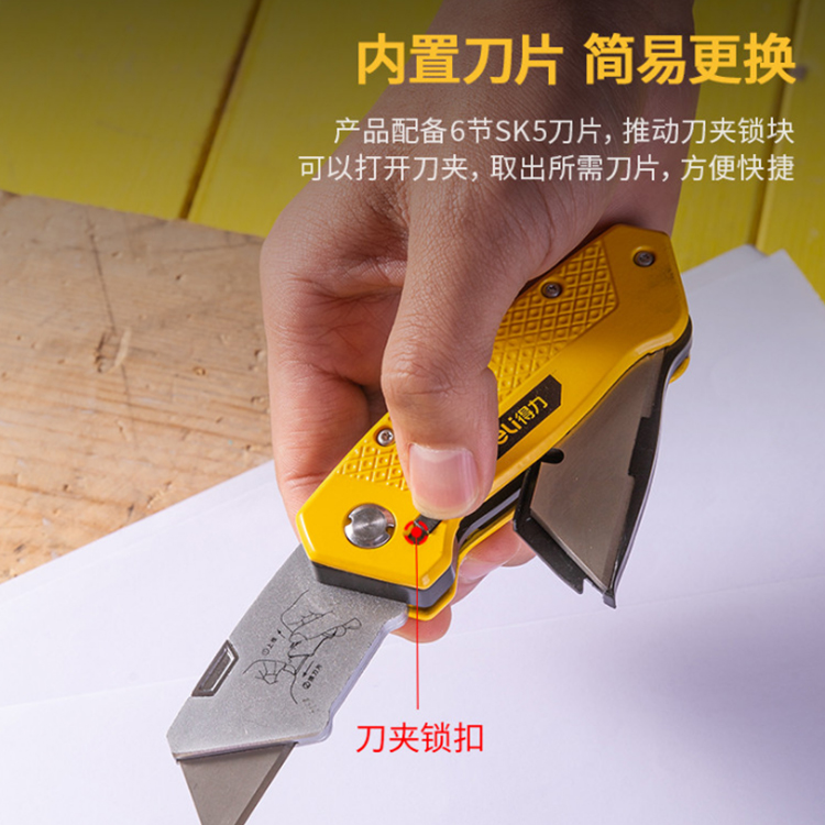 得力鋅合金折疊割刀DL006Z(6刀片)梯形刀片,