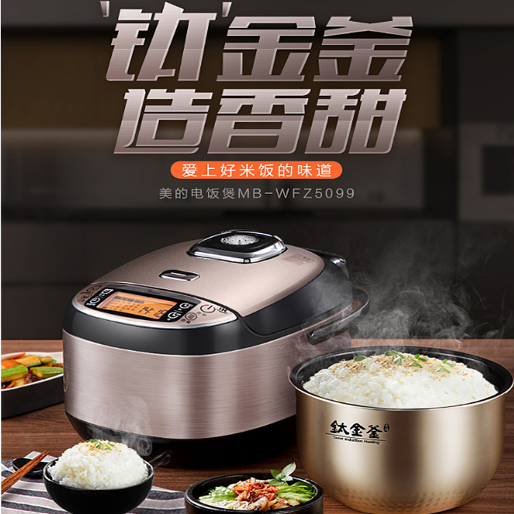 美的(Midea)電飯煲電飯鍋5L大容量鈦金釜內膽IH電磁加熱米飯口感可選多功能