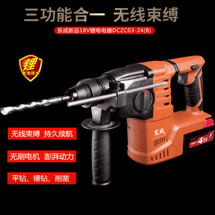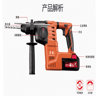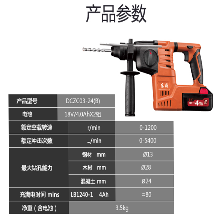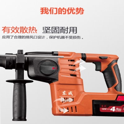 東成充電式電錘DCZC03-24B主要用來在混凝土、樓板、磚墻和石材上鉆孔。
