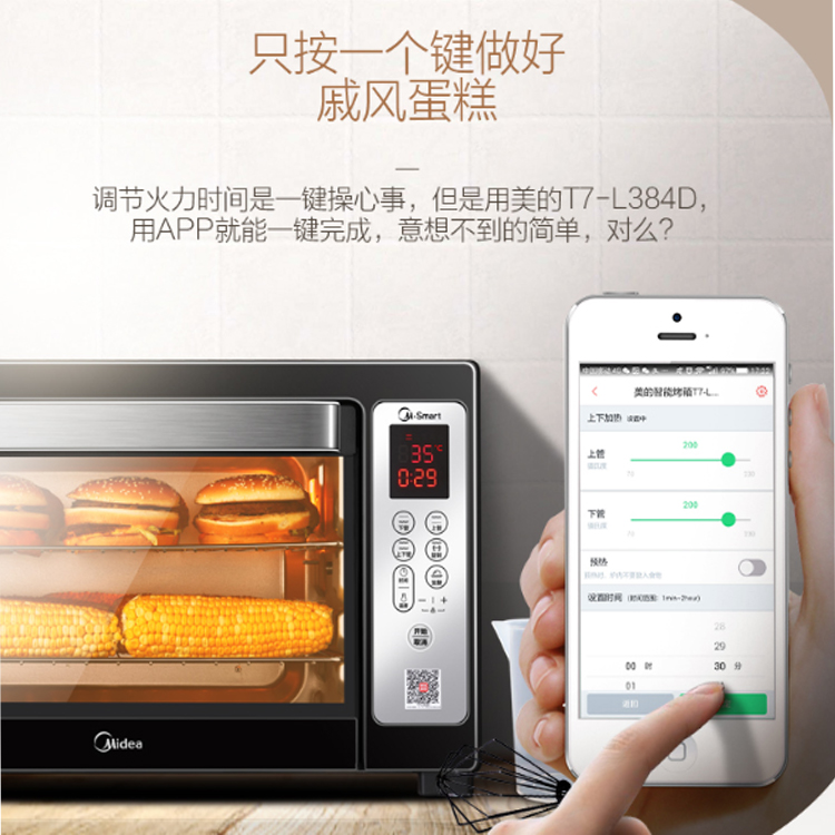 美的家用多功能烤箱無論身處何地,手機(jī)就能了解和把控烘焙進(jìn)度。