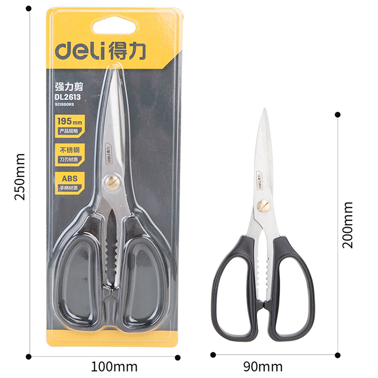 得力家用強力剪刀不銹鋼DL2613多功能廚房,ABS工程塑料注塑手柄,握感舒適。