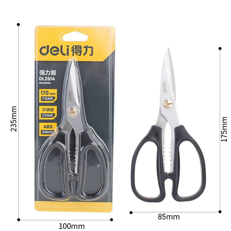 得力家用強(qiáng)力剪刀不銹鋼DL2614,ABS工程塑料注塑手柄,握感舒適。