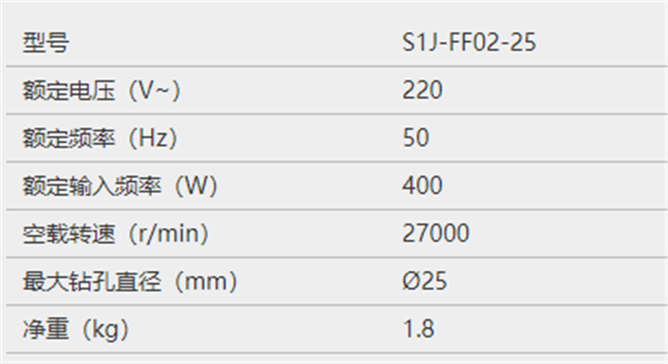 - 型號名稱S1J-FF02-25