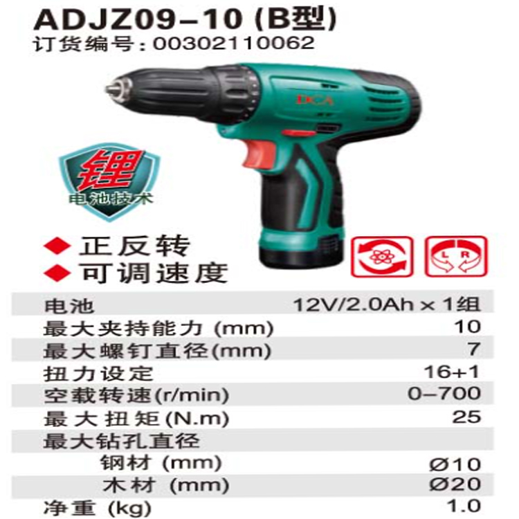 DCA充電式起子電鉆ADJZ09-10(B型)無級變速技術,精準控制,