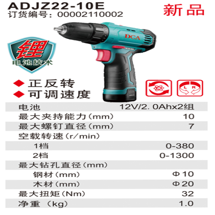 DCA充電式起子電鉆ADJZ22-10(E型)無極變速 輕松控速調節 銅芯電機 強勁動力