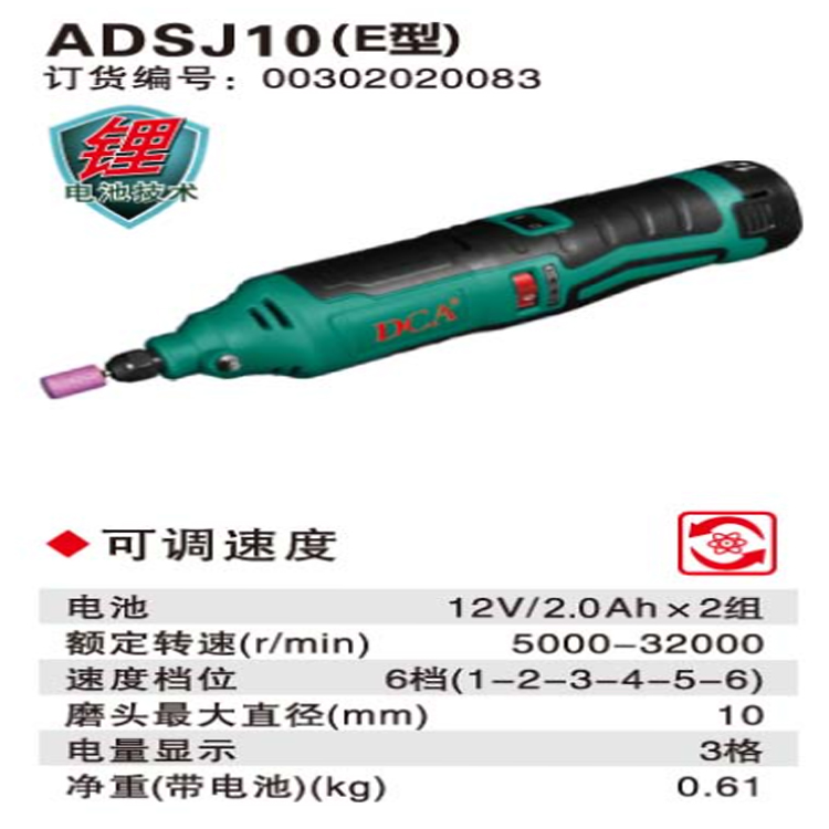 DCA充電式電磨頭ADSJ10(E型)高強度機殼機殼采用優質塑料無異味,