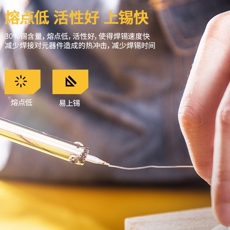 錫絲30%錫含量,熔點低,活性好,使得焊錫
