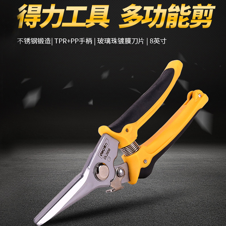 得力不銹鋼電子剪DL2908鐵皮剪多功能強(qiáng)力電工剪電線切線剪刀