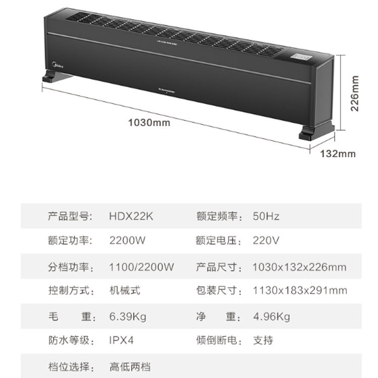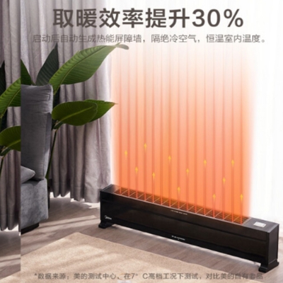 美的(Midea)移動地暖/取暖器/電暖器/電暖氣片家用 靜音節能 遙控防水踢腳線