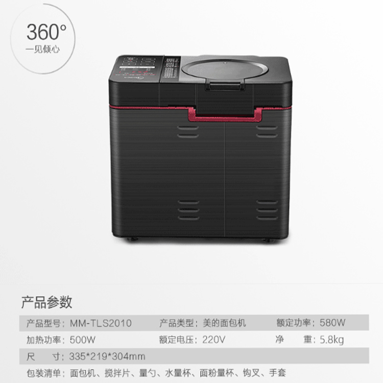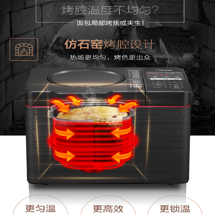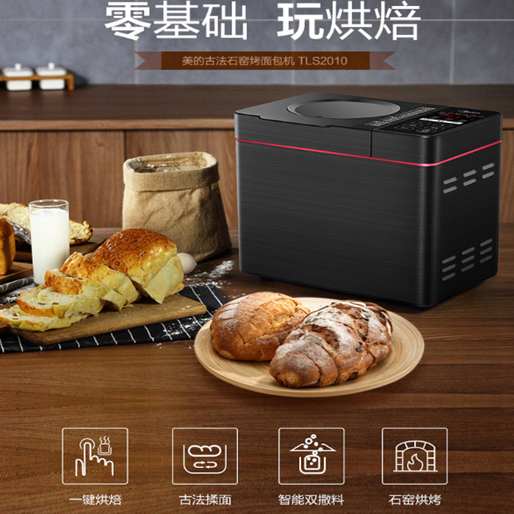 美的家用智能面包機還原古法手工揉面,大扭力強勁道。