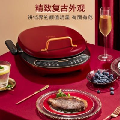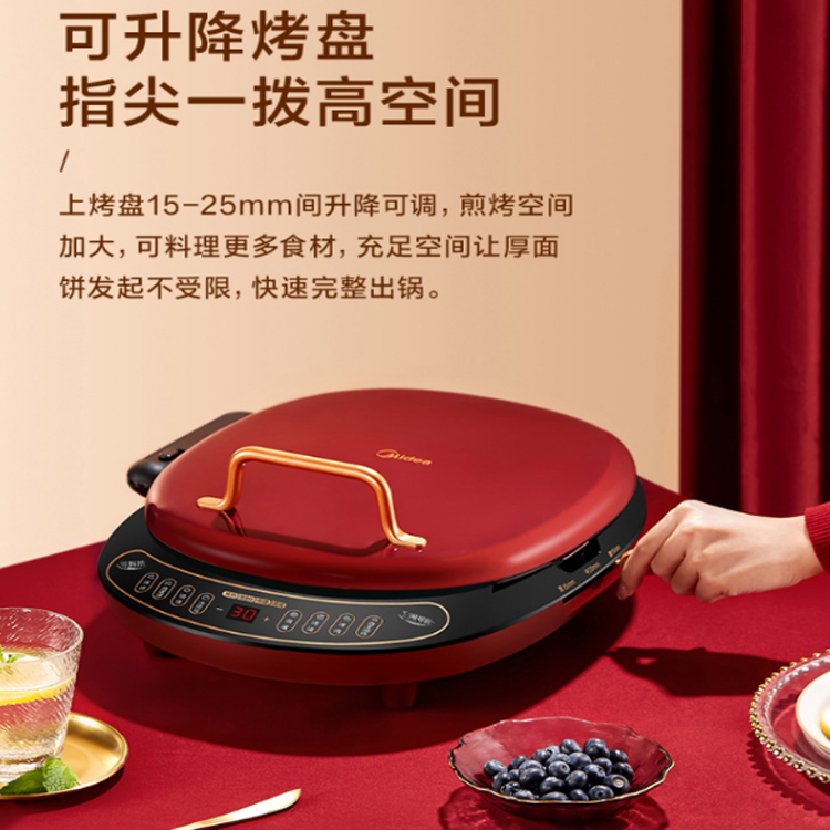 美的(Midea)電餅鐺家用煎烤機下盤可拆洗加厚深盤易用手柄煎餅鐺三明治機