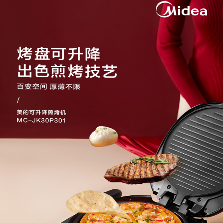 美的家用煎烤機可以升降,百變空間厚薄不限。