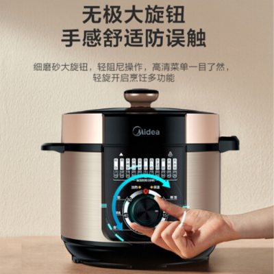 美的家用智能電高壓鍋細磨砂大旋鈕,輕松開啟烹飪多功能。