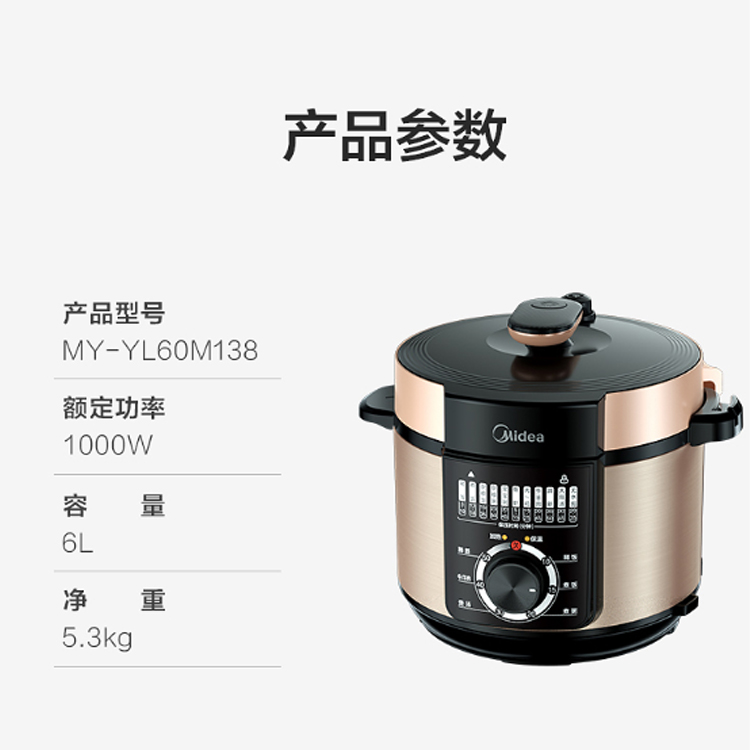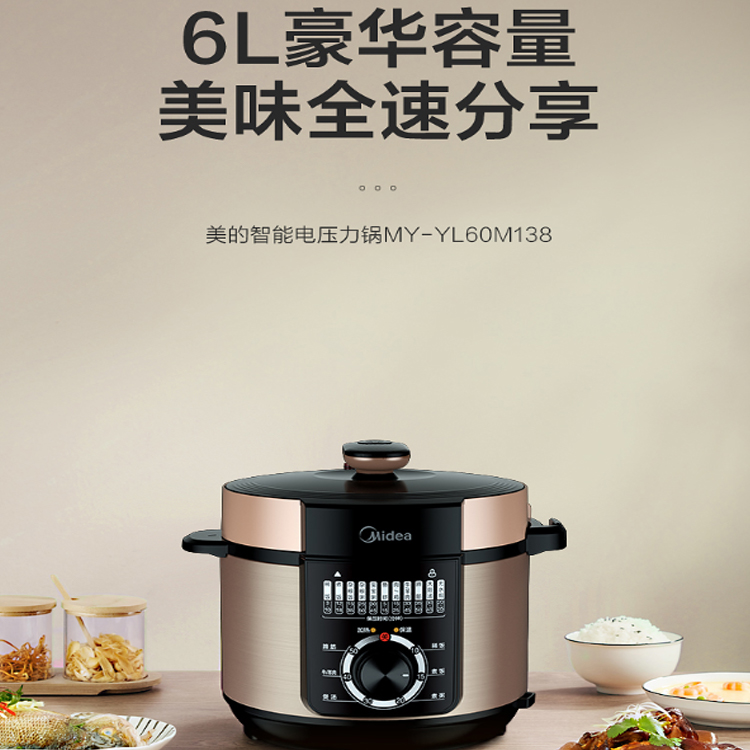 美的(Midea)電壓力鍋家用電壓力煲智能電高壓鍋MY-YL60M138