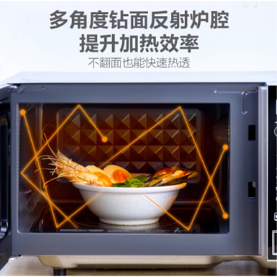 美的快捷家用微波爐多角度鉆面反射爐腔,不翻面也能快速熱透。