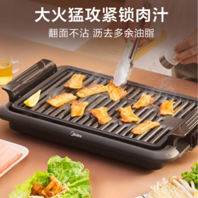 美的(Midea)電餅鐺電燒烤爐電烤盤大功率速熱家用無煙不沾烤串機MC-JK4025P101