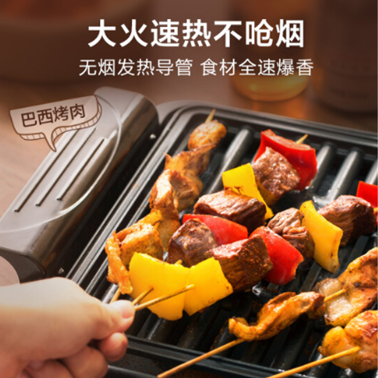 美的無煙不沾烤串機大火猛攻緊鎖肉汁,翻面不粘。