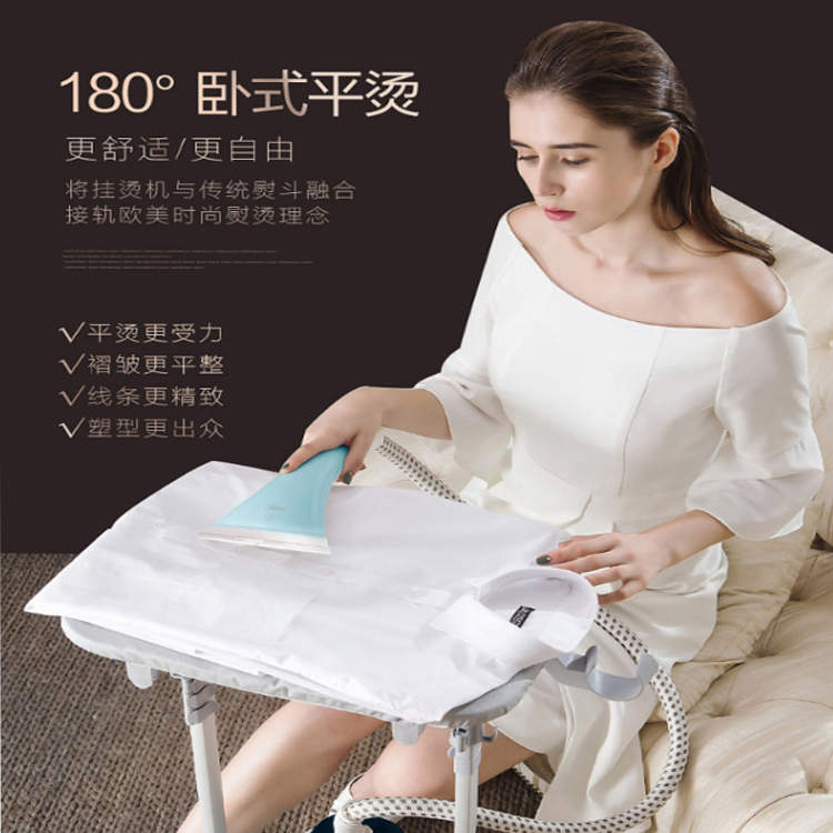 美的掛燙機蒸汽手持熨斗180°臥式平燙,更加受力,熨燙更平整。