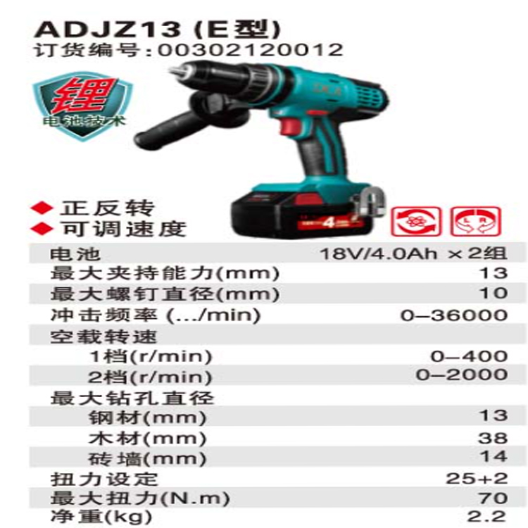 沖擊鉆 ADCJZ13E 雙電18V沖擊電鉆