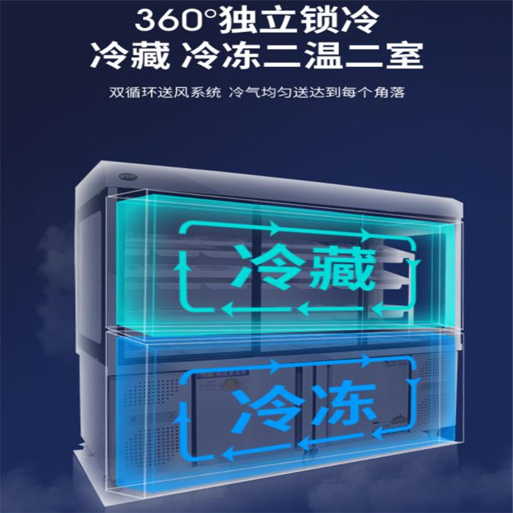 歐馳寶麻辣燙柜果蔬柜360°獨立鎖冷,冷藏冷凍二溫二室,雙循環送風系統,冷氣均勻送達每個角落