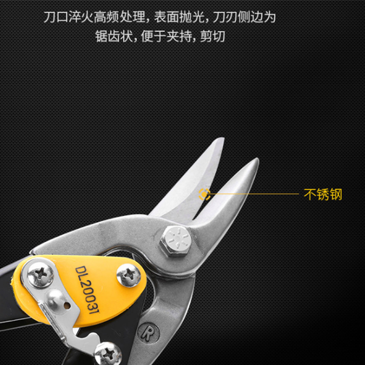得力鐵皮剪刀金屬剪龍骨DL20031左頭航空剪,鉗頭螺母加固,堅固耐用。
