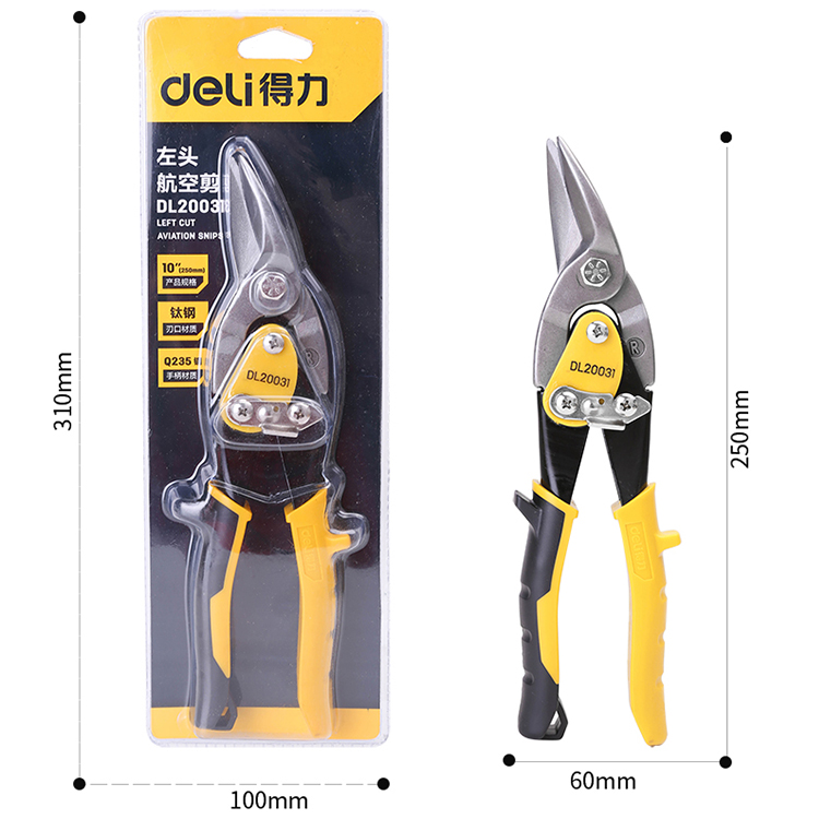 得力鐵皮剪刀金屬剪龍骨DL20031左頭航空剪,