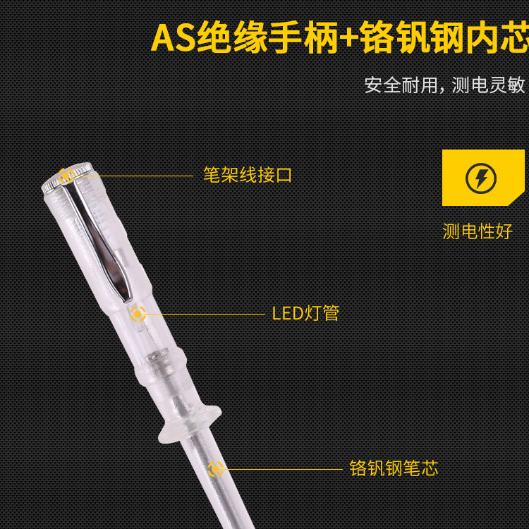 測電筆AS絕緣手柄+鉻釩鋼內芯安全耐用,測電靈敏