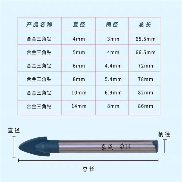 東成瓷磚鉆頭套裝合金瓷磚陶瓷墻壁玻璃轉(zhuǎn)頭電鉆打孔三角鉆頭6mm