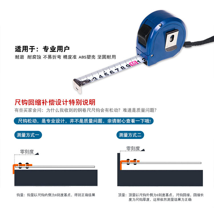 加厚型尺帶,表面涂脂特殊處理,不易生銹,不割手。