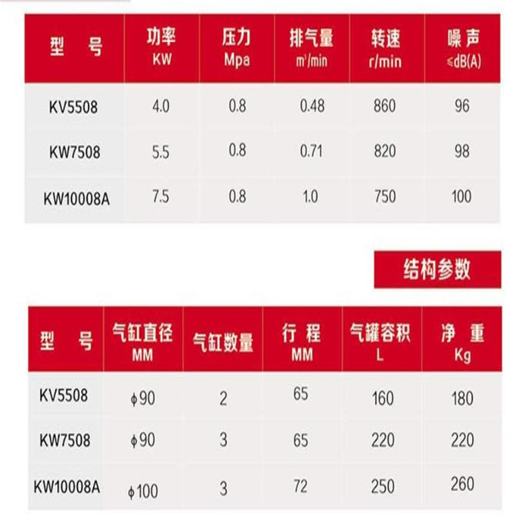 紅五環(huán)K系列活塞式空氣壓縮機(jī)KV5508 KW7508 KW10008A