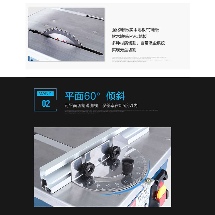 無塵鋸平面60° 傾斜可平面切割踢腳線,誤差率在0.5度以內(nèi)
