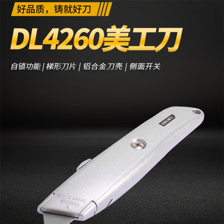 得力美工刀外殼采用鋁合金材質(zhì)制造,手感舒適,不易損壞,外殼堅固。