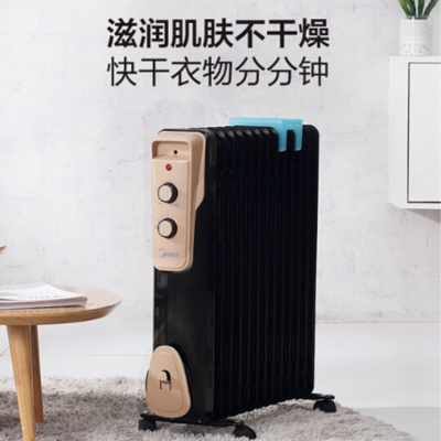 美的(Midea)取暖器/電暖器/電暖氣片家用 節能省電 靜音加濕烘衣 13片大面積