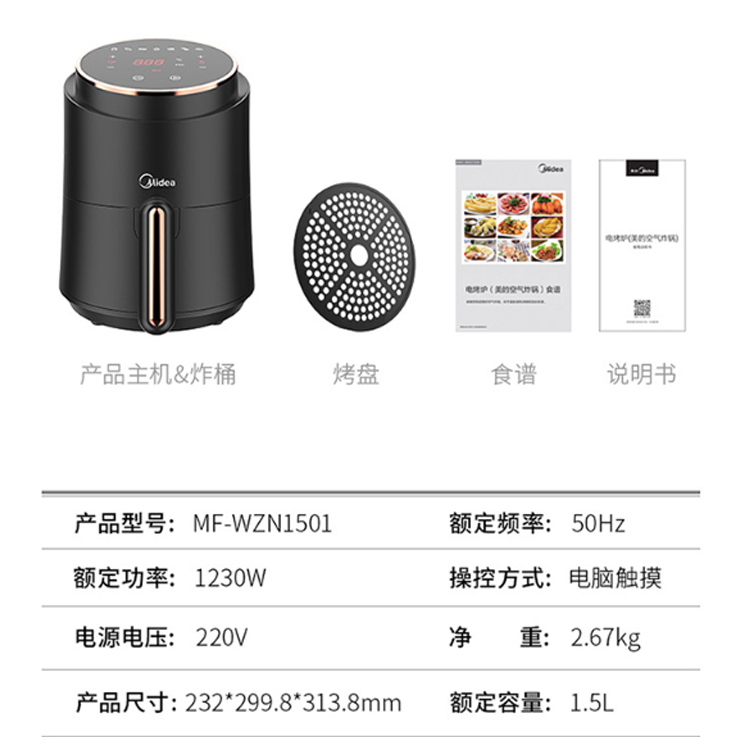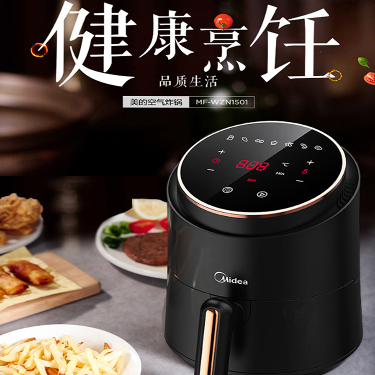 美的(Midea)空氣炸鍋 家用無油智能多功能全息觸屏 電炸鍋 MF-WZN1501 黑色