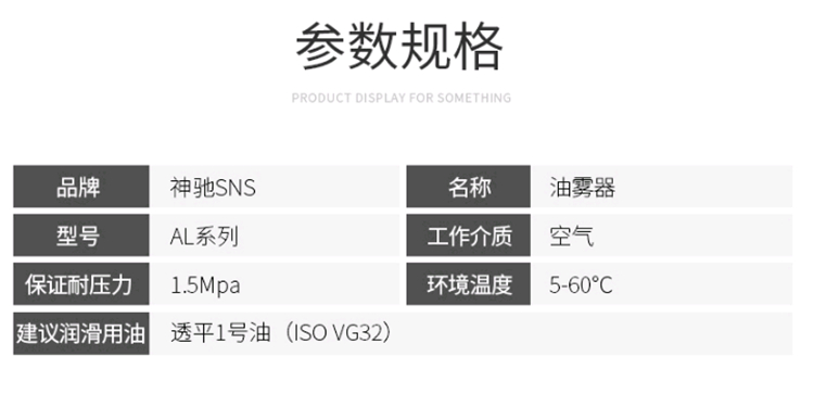 SNS神馳PC杯體亞德客型油霧器基本參數圖
