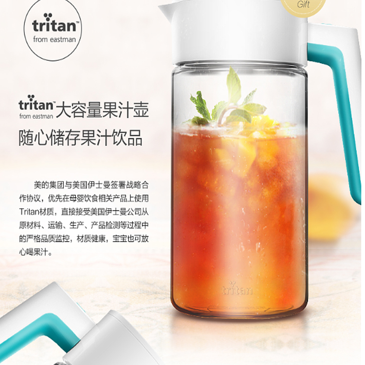 美的(Midea)便攜式果汁杯大容量果汁壺,滿足多人需求。